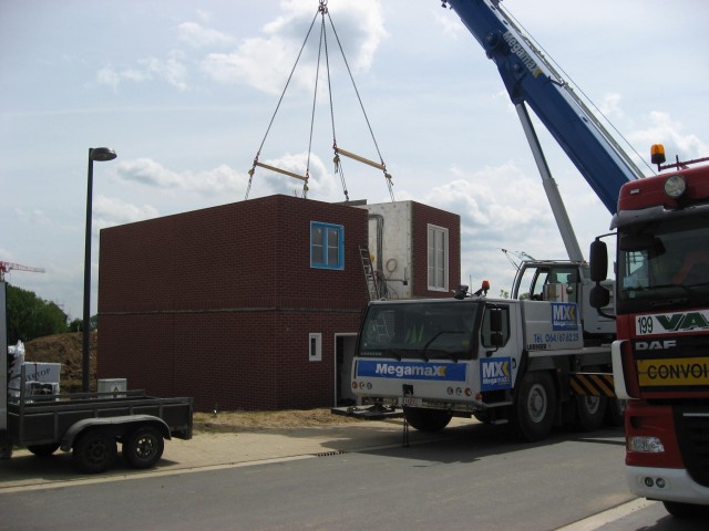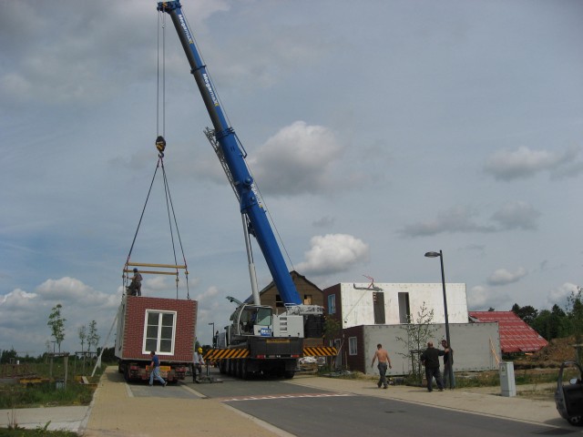 Une maison du lotissement a été construite par cette société qui préfabrique des gros blocs lego en usine qu'ils assemblent en une journée sur site. La maison est en béton armé assez bien isolée (K35) (Sa petite soeur arriverait bientôt).